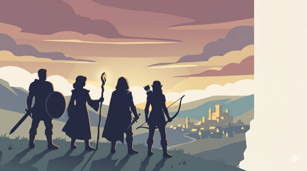冒険者パーティを構成する職業は、戦闘機能別に5系統へ整理できます。ここでは役割と典型的な描かれ方を整理します。キャラクター設計では、どの系統を主人公に据えるかで物語の見え方が変わってきます。