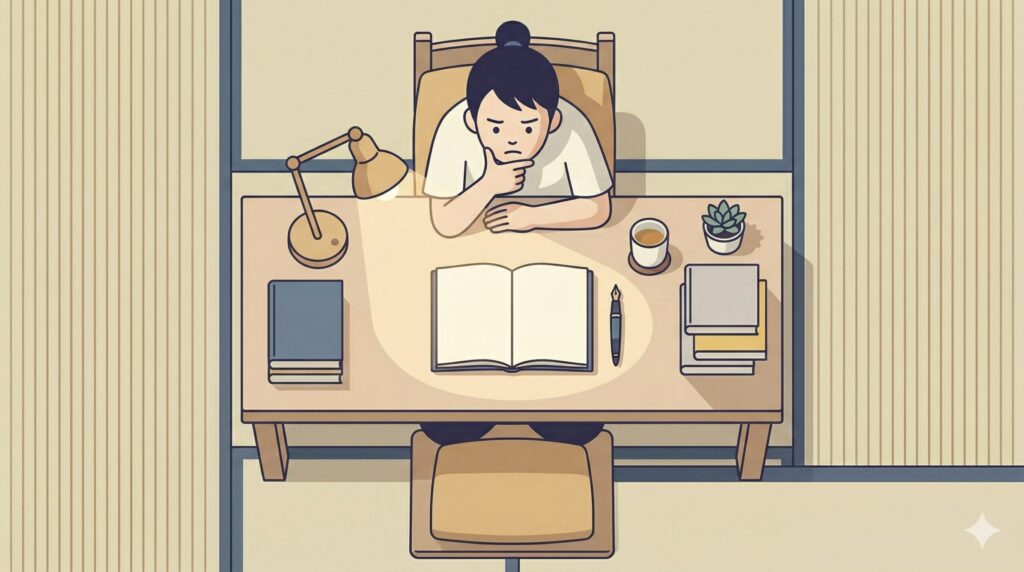書けない状態が続く原因を一言で表すなら、「不確定要素を抱えたまま文章を出力しようとしている」状態です。脳は不確定要素に直面すると処理を止めます。書きたいものはあるのに手が動かない場合、それは文章力の問題ではなく、設定や方向性が決まっていないことへの抵抗感である可能性が高いです。
