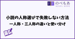 人称は「誰の目で物語を語るか」を決める基本構造です。一人称(「私」「俺」「僕」が語り手)は主人公の心情をダイレクトに伝えられるため、感情移入を促しやすく、Web小説のリーダーとの相性も良いとされています。三人称は複数キャラクターの視点を使い分けられる反面、どのキャラクターに寄るかの判断が常に求められるため、初心者には難易度が高くなりがちです。