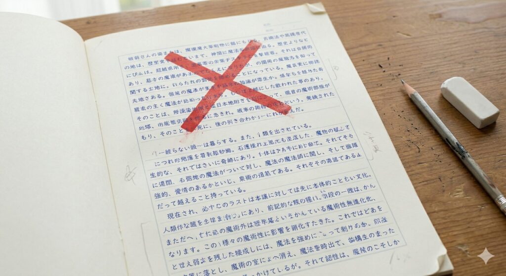 小説の書き方に関する記事の多くは、文章表現のミスを中心に失敗を列挙します。「一文が長い」「会話の後に『と言った』を多用している」「語彙が足りない」。こうした指摘は正しい一方で、優先度が示されないことが多く、初心者が最初に修正すべき問題とそうでない問題の区別がつきません。