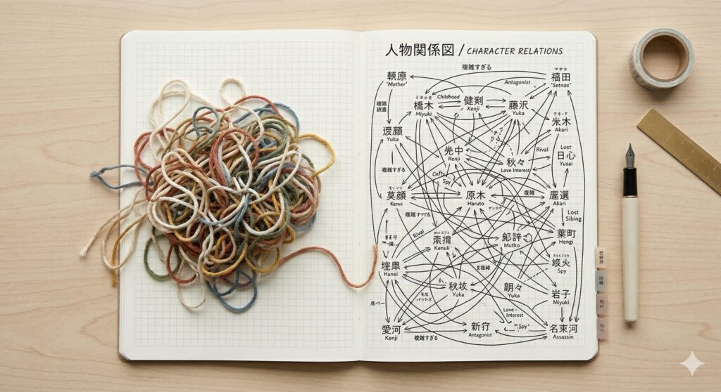 書いているうちに面白いキャラクターが増え、その全員に出番を与えたくなる。この衝動は理解できますが、複数のキャラクターに均等に視点が移ると読者が物語に没入する起点を失います。メインキャラクターの数は、最初の1作では2〜3人以内に絞ることで、それぞれの魅力を丁寧に書けます。