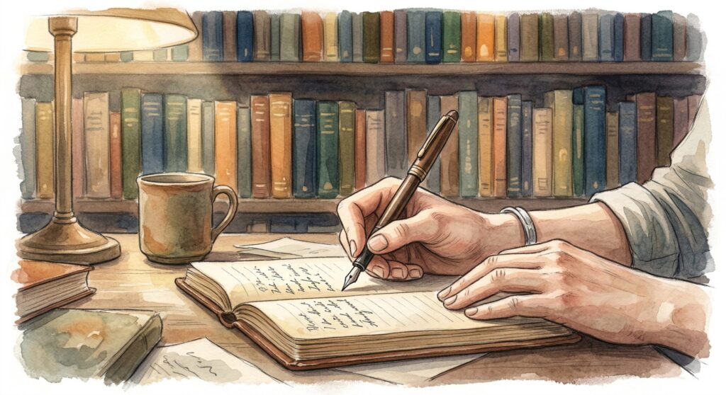 描写力向上に最も効果的なのは、模写そのものではなく「解析的な模写」です。お手本作品を読みながら「この描写はなぜ印象に残るのか」「自分ならどう書くか」を考えながら書き写します。次に、自分が書いた状態描写の文を一本選び、「言ったorした」という動詞を使わずに書き直す練習をすることで、描写の具体性が上がります。「困った」ではなく「肩をすくめた」と書く――この感覚を、意識的に訓練することで養えます。また、同じシーンを1週間後に模写なしで書いてみて、お手本との差分を観察する方法も、自分の課題を可視化するうえで有効です。