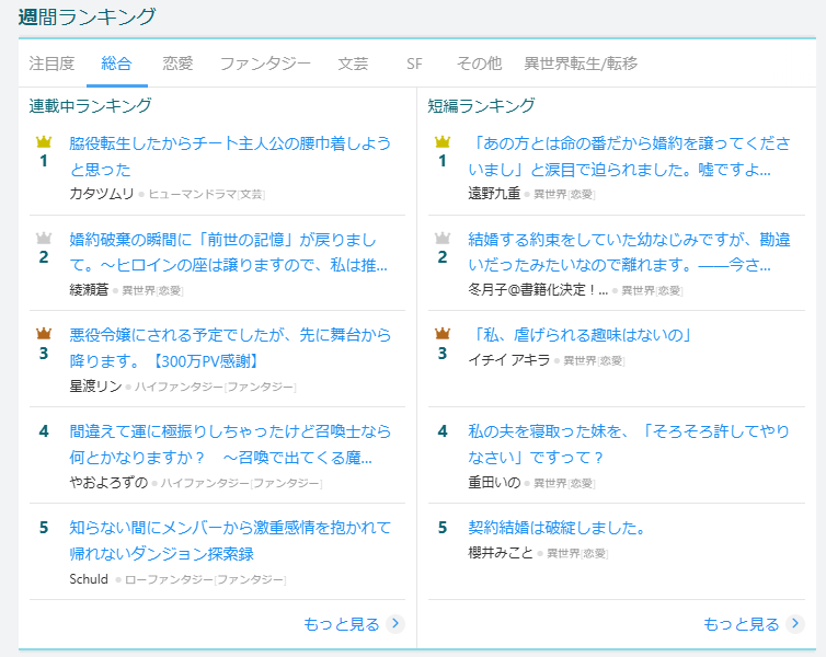 なろうのランキング構造