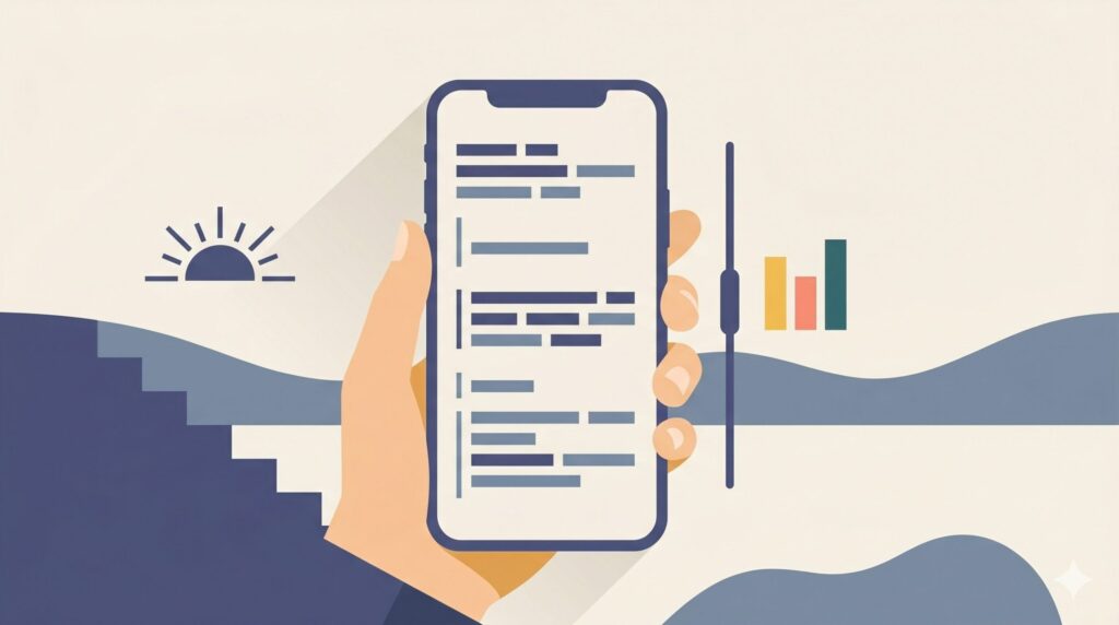 次のアクションとして、直近で書いた1話分を開いて、地の文のブロックが5行を超えている箇所にマーカーを引いてみてください。そこが最初の改善ポイントです。