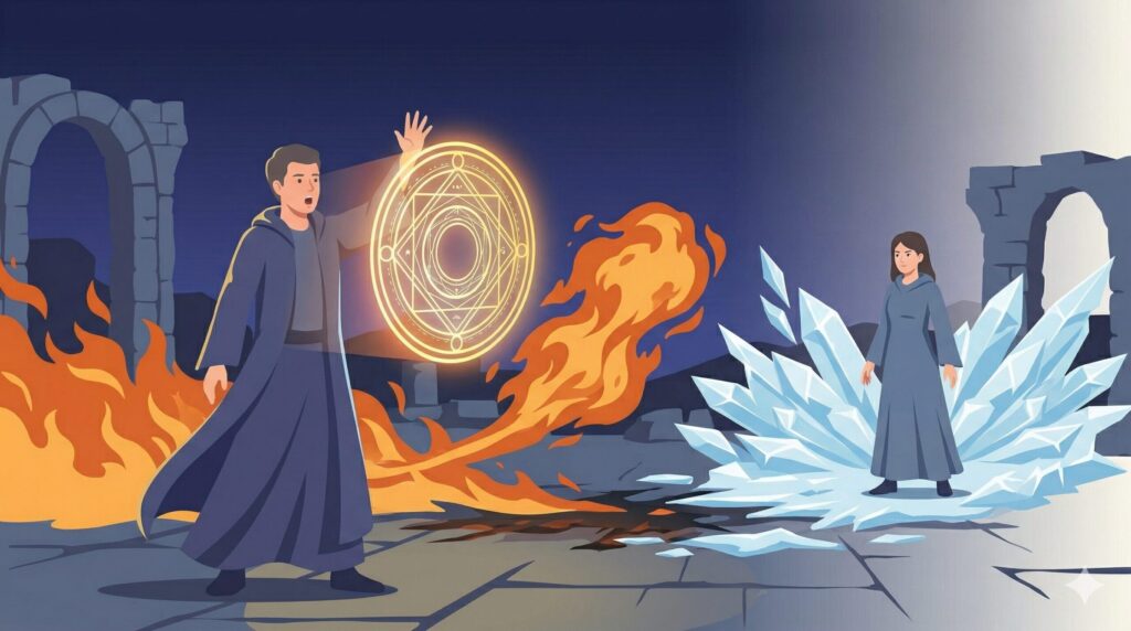 呼びかけは「大いなる〇〇よ」「我が盟約に従い〇〇の精霊よ」「始まりの〇〇よ」といった形式が多く使われます。ここで重要なのは、呼びかける対象と魔法の属性を一致させることです。炎の魔法なら「火を司る精霊」「灼熱の盟約」、氷なら「極寒の理(ことわり)」「霜の母なる存在」といった連動が、詠唱に必然性を与えます。