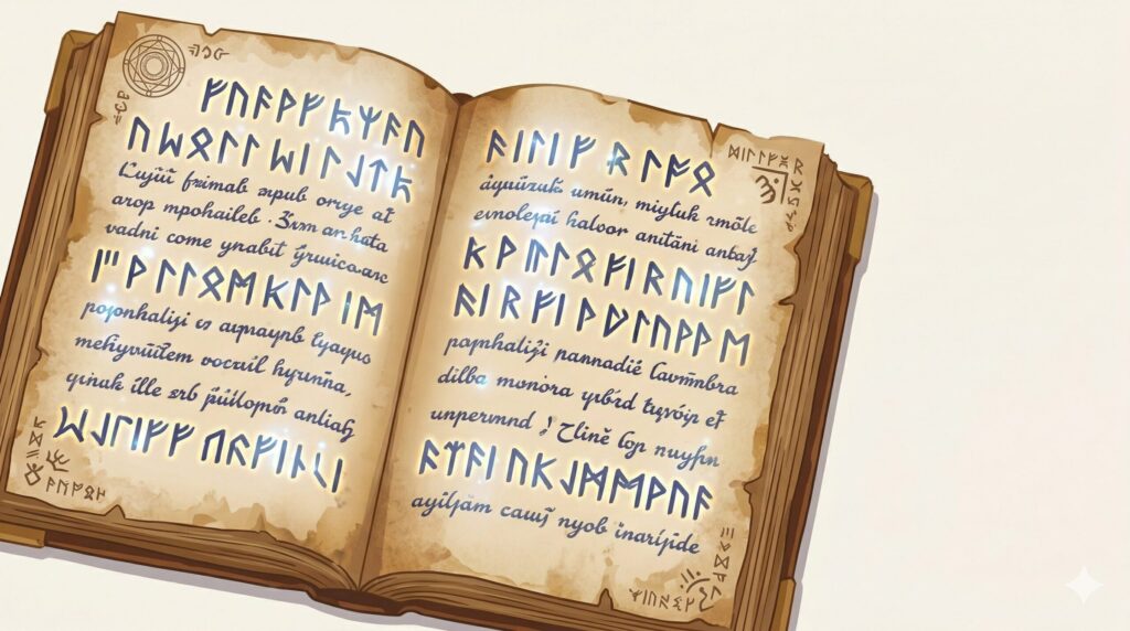 詠唱に使われる言語や語彙の体系は、その世界の歴史・文化・魔法体系を暗示します。古代エルフ語・神聖文字・精霊への祈祷形式など、詠唱の形式だけで「この世界はどういう場所か」という情報が読者に伝わります。説明文を増やさなくても、詠唱が世界観の補足説明を担えるのです。